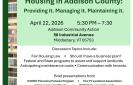 Presentations & Conversations on Housing in Addison County - Providing It. Managing It. Maintaining It.