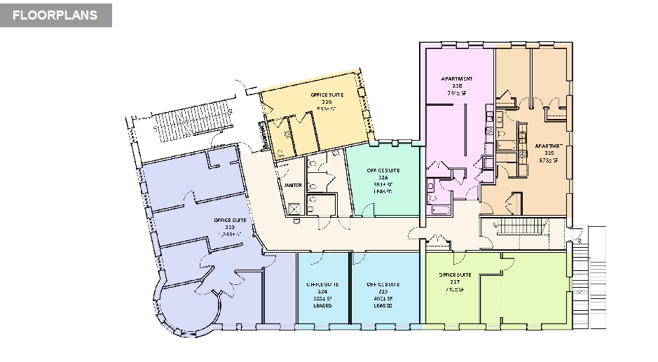 3 Suites available: 535 SF, 740 SF, and 1,348 SF