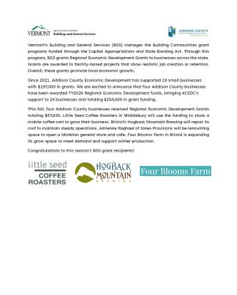 Addison County Economic Development Corporation (ACEDC) is currently accepting applications for the 2026…